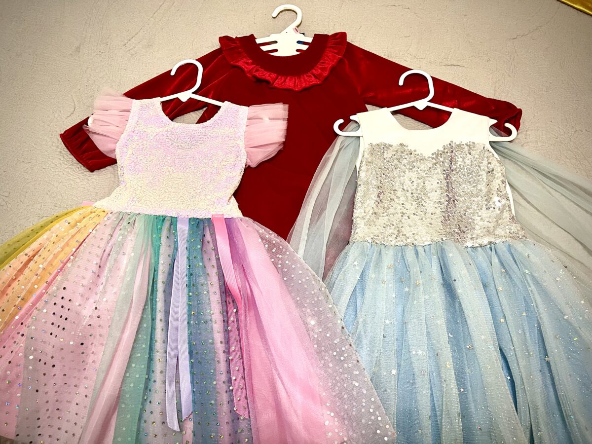 Este lote incluye 3 vestidos de niña, talla 3 años, ideales para fiestas, disfraces o momentos especiales. Todos en excelente estado y con estilos únicos: