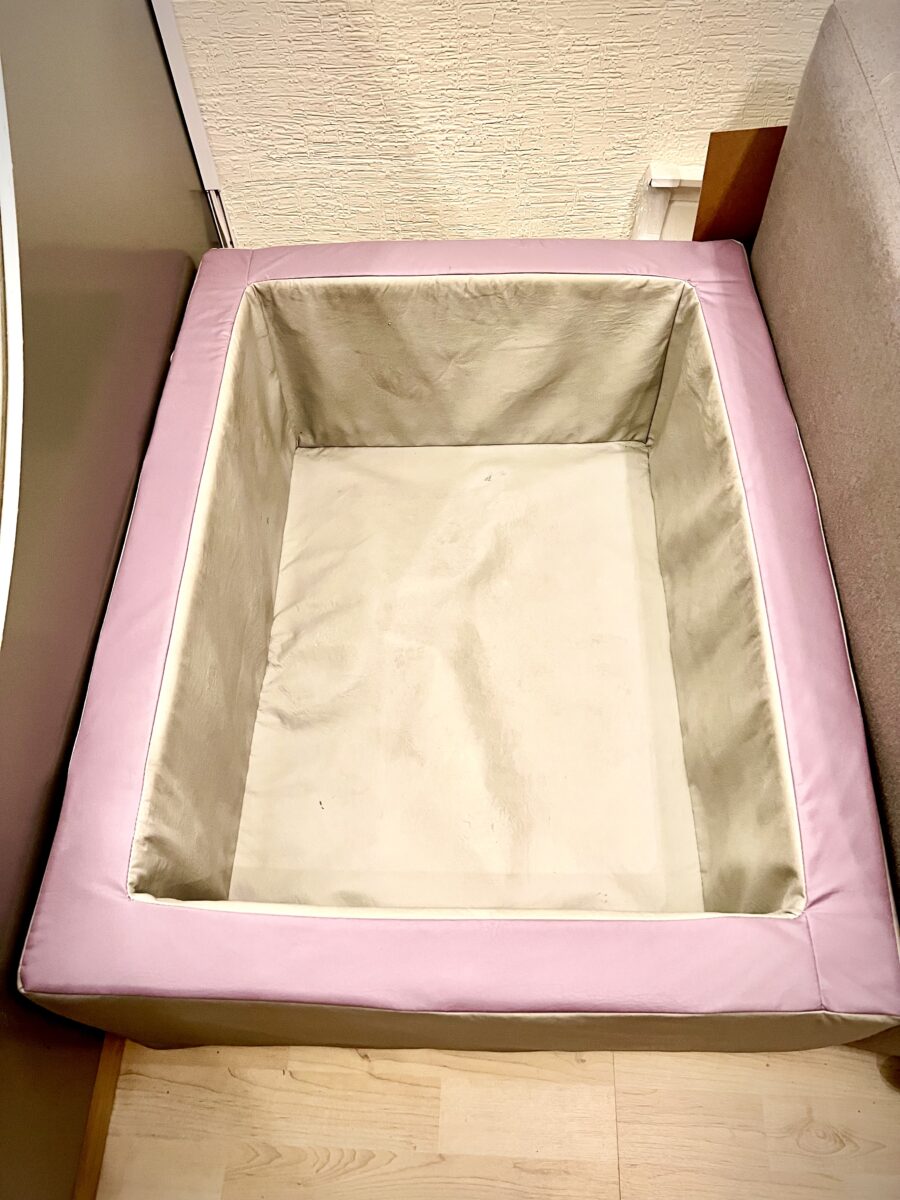 📌 Alberca rectangular acolchonada, segura y cómoda.