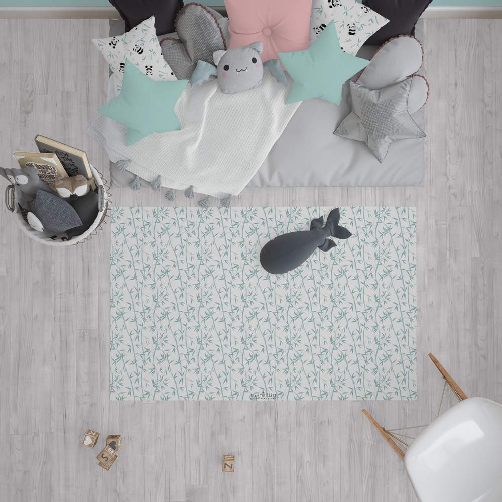 Puedes encontrar esta alfombra Bambú a juego con textiles, vinilos, láminas, papel pintado… todo en la colección Bambú de nuestra tienda. De manera que puedes decorar toda la habitación de tu pequeño con el mismo tema.