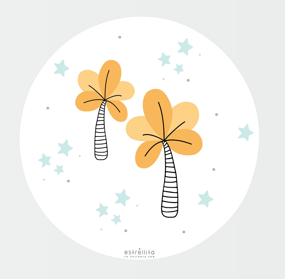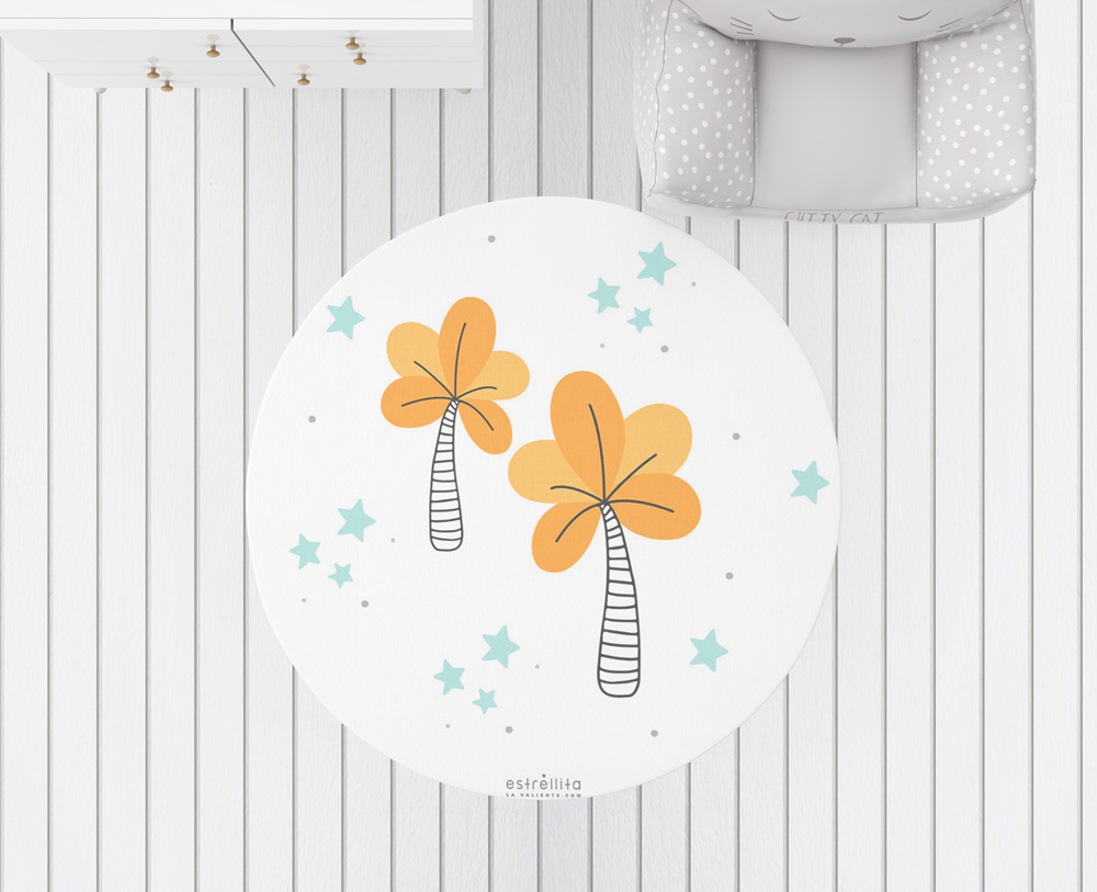 Alfombra redonda Palmeras Rey de la Selva es una preciosa alfombra vinílica original de Estrellita La Valiente.