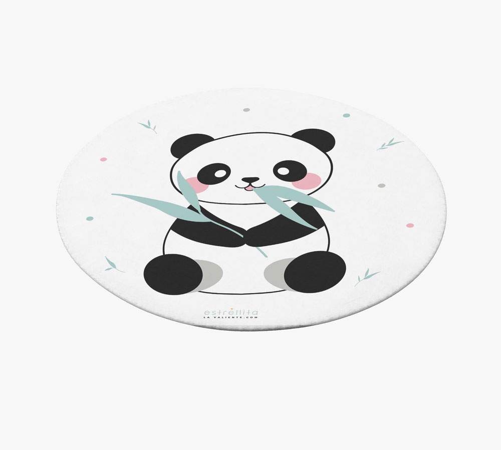 Alfombra redonda Panda comilón es una preciosa alfombra vinílica original de Estrellita La Valiente.