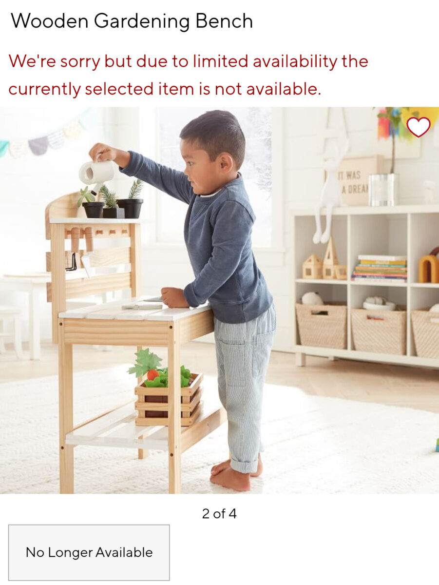 Banco de madera para jugar al jardinero, Pottery Barn (NUEVO)