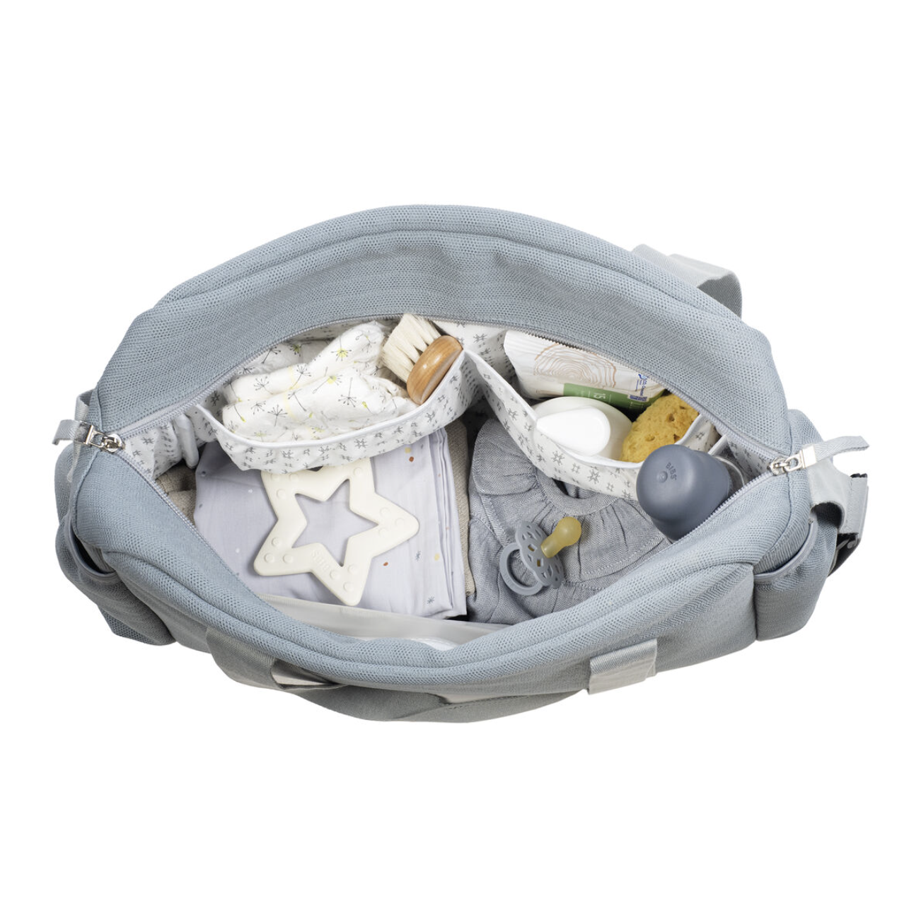 Bolso cambiador Eco Mum Cloud está fabricada con rPET (poliéster reciclado post-consumo). El rPET que utilizamos está hecho de plástico PET reciclado de botellas de agua. El uso de este material reduce el consumo de agua, el consumo de energía y la emisión de CO2. Es un bolso para silla de paseo que incluye cambiador para bebe. Bolsa canastilla muy ligera, resistente y de gran capacidad para llevar todo lo necesario para el paseo del bebe. Tiene multiples bolsillos para poder tener todo ordenado. Dispone en el exterior de dos bolsillos laterales para botellas o biberones y un bolsillo con cremallera frontal. En el interior incopora un bolsillo plastificado para la ropa húmeda, un bolsillo térmico para biberones y dos bolsillos para lo que necesites tener más a mano. La bolsa tiene un sistema universal de fijación, con 2 asas cortas ajustables que facilita la colocación en cualquier modelo de silla de paseo. También incorpora una asa larga para poder colgarla en el hombro y asas cortas para cogerla con la mano. Gran calidad y mucho estilo. Fabricada en un material resistente y de fácil limpieza. Walking Mum protege a tu bebé utilizando los mejores tejidos, libres de colorantes azoicos y sustancias nocivas para la salud. Nuestra colección Walking Mum está diseñada con un particular sello de estilo urbano y moderno que no pasa desapercibido, para vestir diferente los paseos con tu bebé. Las bolsas de maternidad de esta línea son más sport y prácticas, especialmente pensadas en mamás y papás modernos que aprecian los diseños más actuales y en tendencia sin dejar de lado la calidad y la funcionalidad de los accesorios que complementan y hacen más cómodos todos los paseos con sus bebés. Especificaciones: Materiales: Exterior 100 % poliéster recilcado (rPet) / Interior 100% algodón. Medidas: 52X31X13 cm.