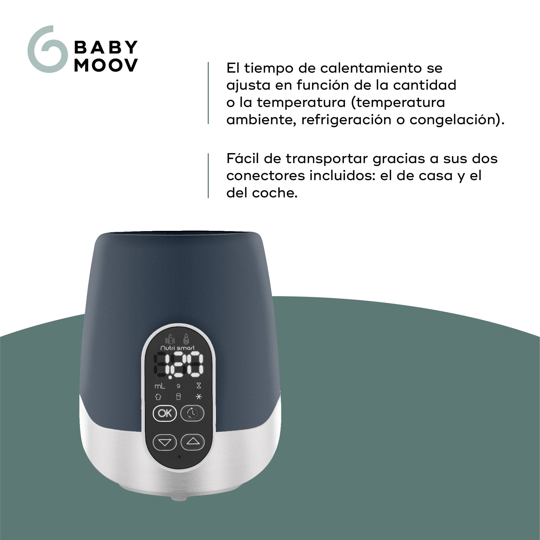 Práctico: propone automáticamente un tiempo de calentado adaptado al bebé cuando se indica la cantidad de leche o de puré que se va a calentar y su temperatura (ambiente, frigorífico o congelador)