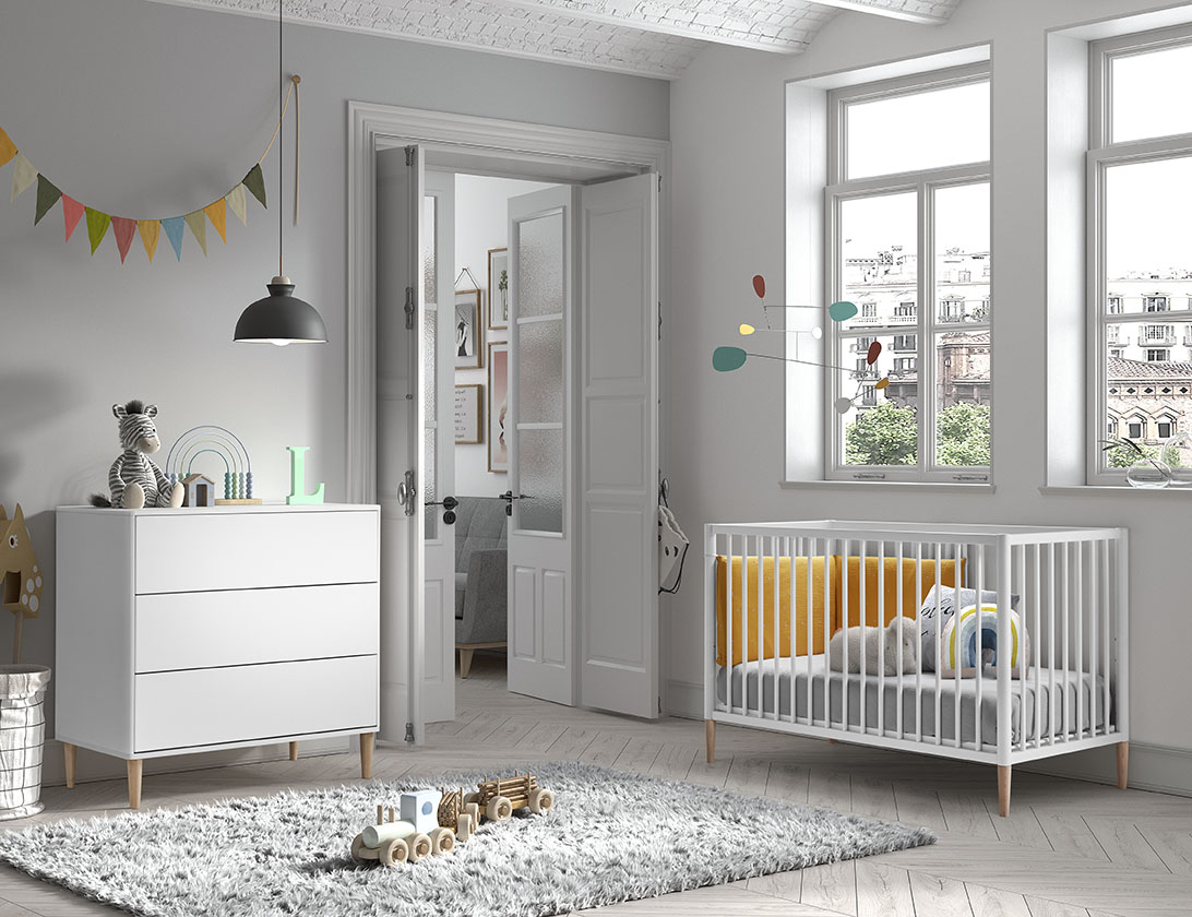 Fabricado en DM (MDF) lacado blanco con pintura al agua, garantiza un acabado duradero, no tóxico y fácil de limpiar, cuidando tanto la estética como la salud de tu bebé. Los cantos redondeados aportan mayor seguridad durante los cambios diarios.