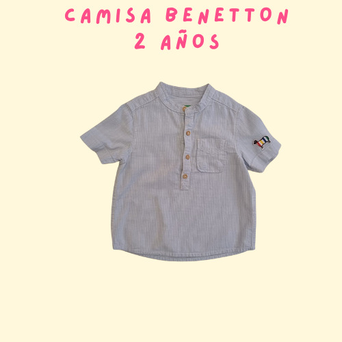 Camisa Benetton 2 años, cuello mao, 100% algodón