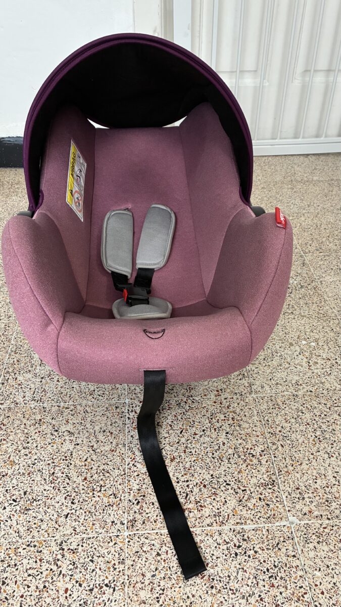 Se puede utilizar también como canastilla portabebé, mecedora y silla fija con sólo cambiar la posición del asa. Práctico y seguro autoasiento para recién nacido. Peso máximo 13 kilos. Colocación a contramarcha.