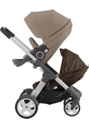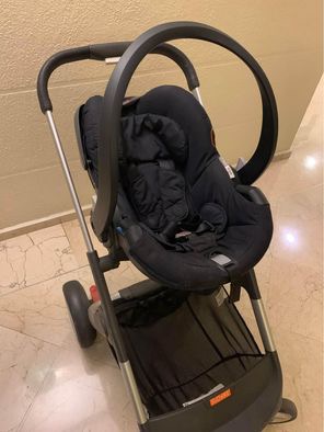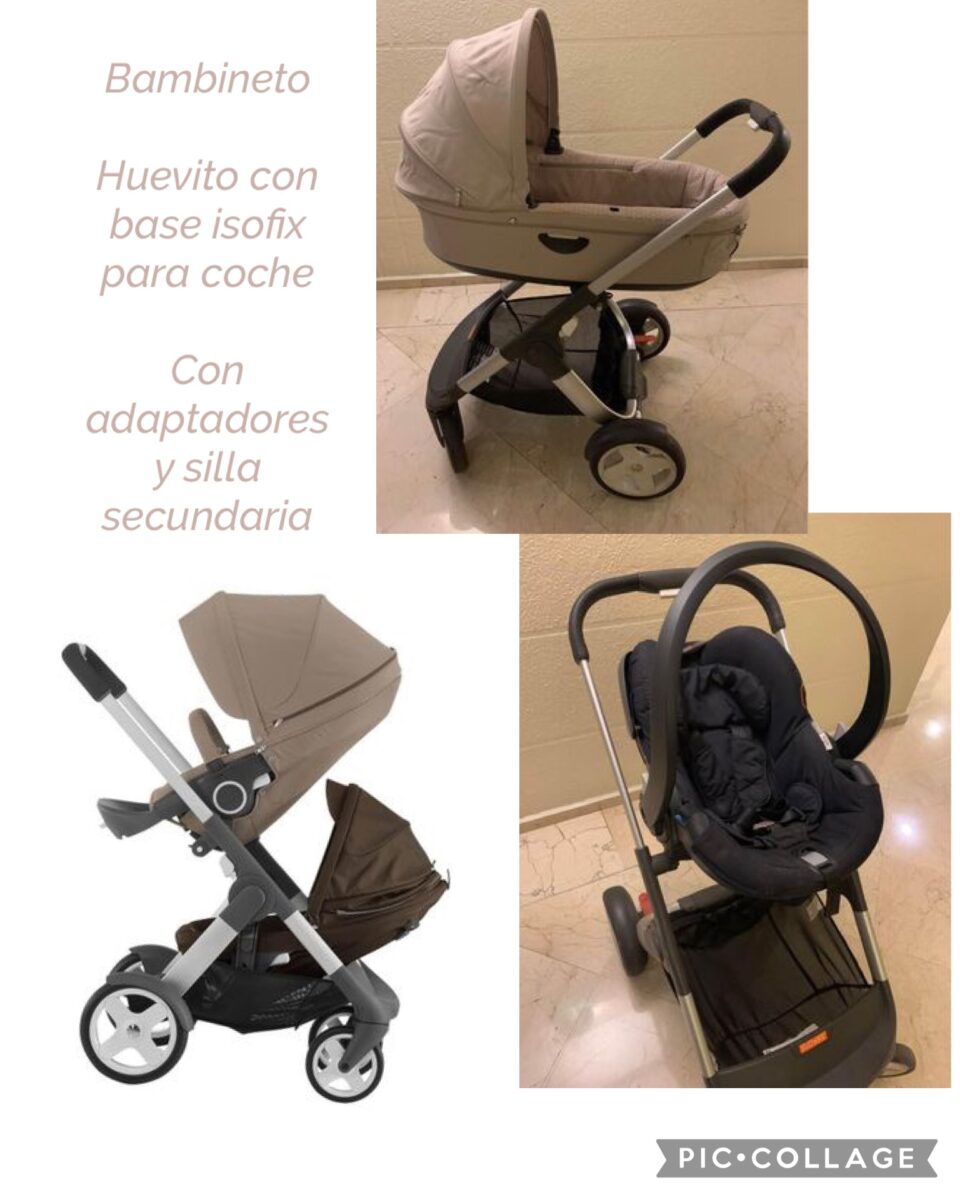 incluye: carreola con bambineto, silla, segunda silla para hermano en color café, sleeping bag, funda de lluvia o viento, funda de silla contra nieve y viento, huevito y base isofix para coche, repuesto de tela beige en huevito para lavar, funda para viaje. TODO ORIGINAL STOKKE