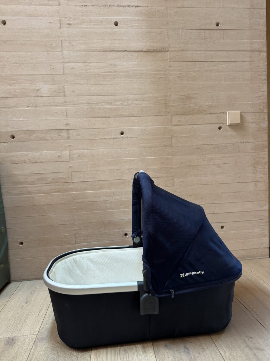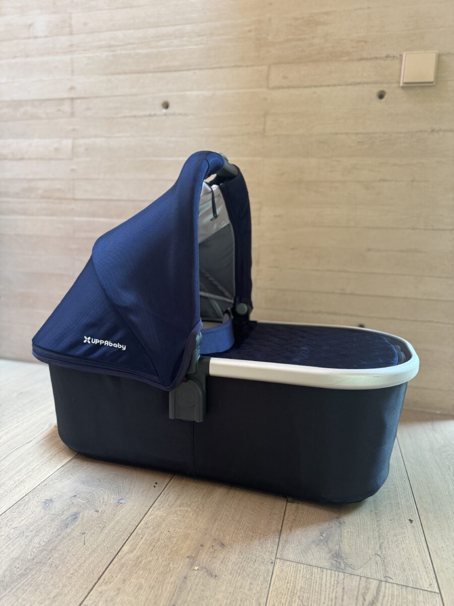 Cuna Uppa Baby Vista Taylor azul. Buen estado. Algunos rayones, funcionalidad en perfecto estado. Incluye adaptadores superiores. Impermeable, mosquitero y moises.