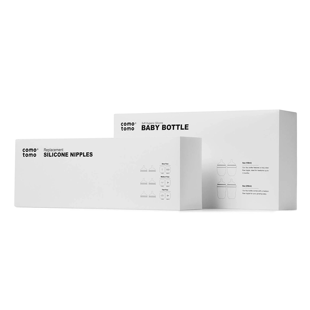 Al diseñar nuestra botella, buscamos resolver todos los problemas existentes con las botellas de bebé estándar. Colocamos las rejillas de ventilación dobles inteligentes y sin fugas para evitar los cólicos, hicimos un diseño de cuello ancho para facilitar la limpieza, y utilizamos un material de silicona higiénico para que nunca tengas que preocuparte por productos químicos tóxicos. Sobre todo, nuestra botella está diseñada para imitar la lactancia materna para ayudar a los bebés a pasar fácilmente de una y otra vez de la lactancia a la alimentación de biberones. Ha rescatado a tantas familias tratando con ‘confusión de pezón’ y ‘rechazo de botella’ que nuestra mamá Comotomo acuñó el término ‘Lactancia materna en una botella! ‘.