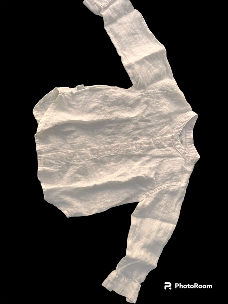 Camisa de lino cuello mao, manga larga, color blanco, talla 36 m