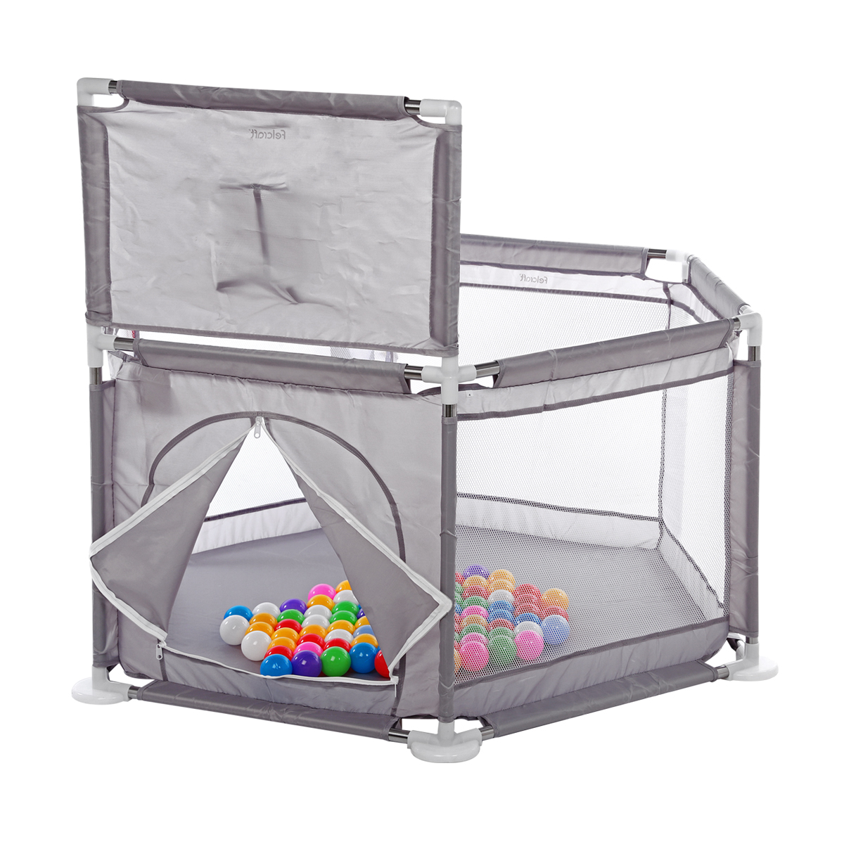 Corralito Hexa Basket para niños a partir de los 6 meses. Seguro. Fácil de desarmar. Para exterior e interior. Abertura con cierre + Aro de Basket.