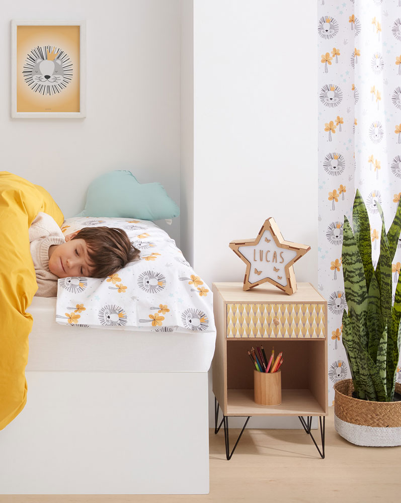 Bonita cortina algodón Rey de la Selva para colocar en las habitaciones los más pequeños de la casa. Un diseño de Estrellita la Valiente con el que darás un nuevo aire a tu hogar.