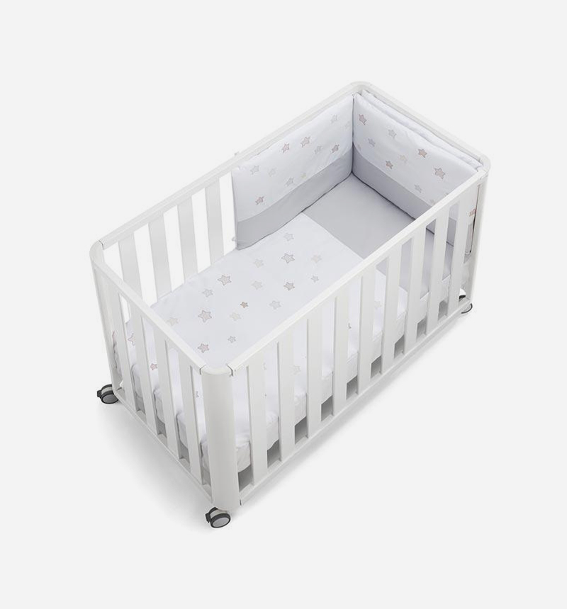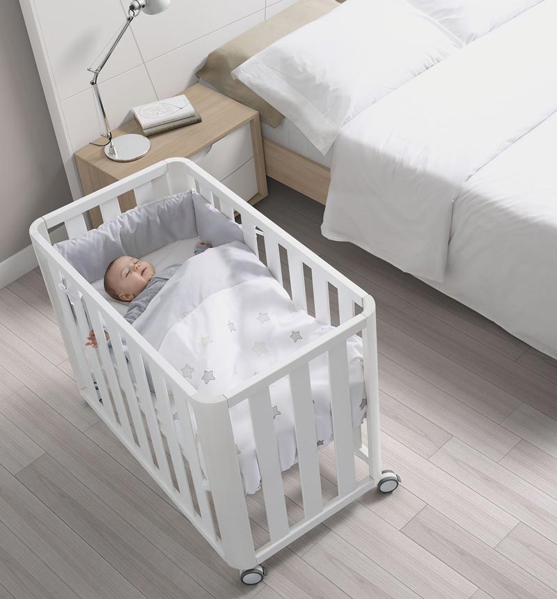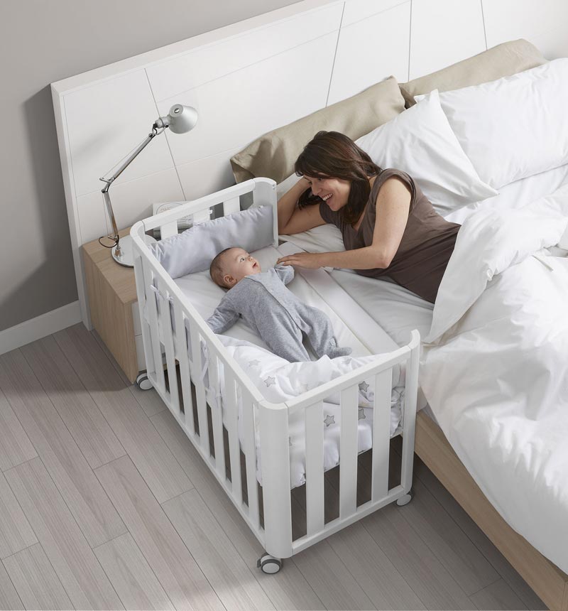 Cuenta con un lateral móvil que se extrae fácilmente sin herramientas, permitiendo una transición rápida entre colecho y cuna tradicional. Incluye un puente de colchón que cubre el espacio entre la cama de los padres y la cuna para un descanso más seguro y cómodo.