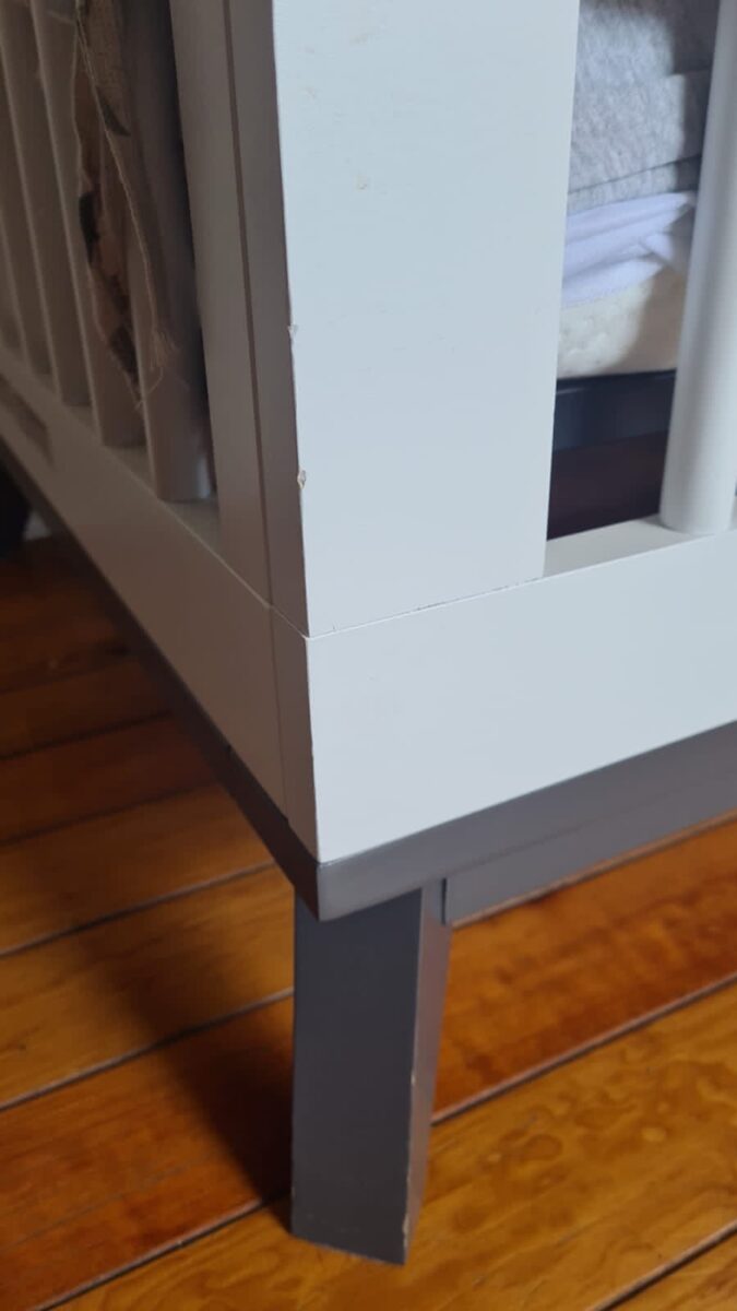 Es una cuna que tiene 4 niveles, incluso quitar las patas y colocar el colchón a nivel del piso para los niños más grandes y hacerla cama Montessori, incluye el medio barandal y colchón con forro