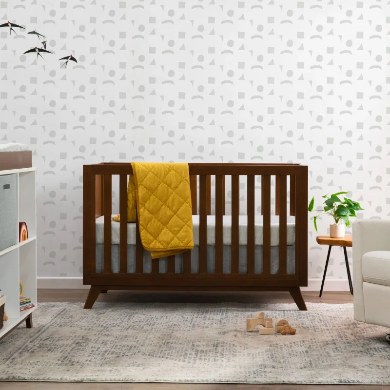 La cuna convertible DaVinci Otto 3 en 1 es una pieza de mobiliario infantil que combina diseño moderno de mediados de siglo con funcionalidad adaptable, permitiendo su transformación de cuna a cama para niños pequeños y a sofá cama, acompañando el crecimiento de tu hijo.