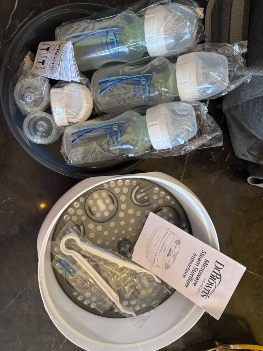El esterilizador a vapor para microondas de Dr. Brown’s, tiene capacidad para hasta cuatro biberones de todos los tamaños, así como piezas de biberón. El vapor caliente elimina eficientemente el 99,9% de las bacterias y gérmenes comunes en el hogar. Viene con pinzas para retirar de manera segura los biberones y accesorios del biberón después de la esterilización. Incluye una bandeja de esterilización, diseñada a medida para sostener los biberones y accesorios. Esta bandeja es extraíble para facilitar su limpieza. Ideal para esterilizar también chupones y vasos de entrenamiento. Libre de BPA.