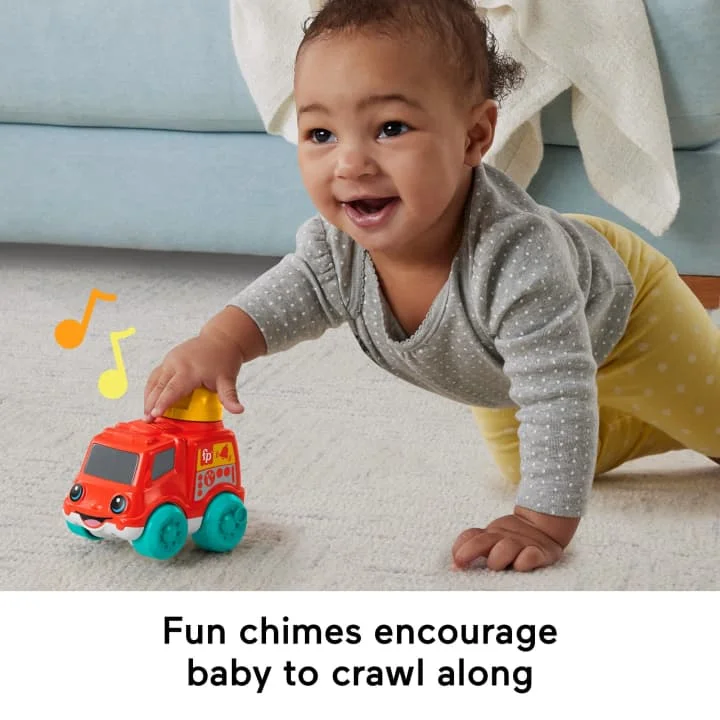Tu pequeño disfrutará de muchísima diversión con el Chime & Ride Fire Truck de Fisher-Price. Este adorable vehículo de arrastre presenta colores brillantes, una cara amigable y una manguera de bomberos fácil de agarrar que gira 360 grados y hace un sonido de clic. Además, cuando el bebé empuja o tira del camión de bomberos, será recompensado con un sonido de campanillas. Toda esta actividad anima a los bebés a gatear junto al camión, ayudando al desarrollo de las importantes habilidades motoras finas y gruesas.