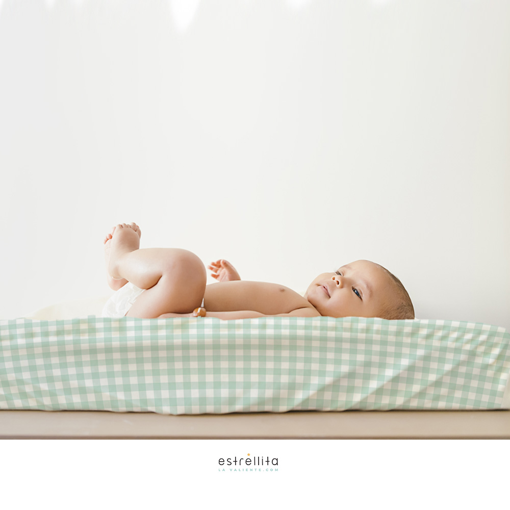 Funda de algodón para colocar sobre la colchoneta donde cambias a tu bebé. Se adapta fácilmente gracias a unas gomas en sus bordes.