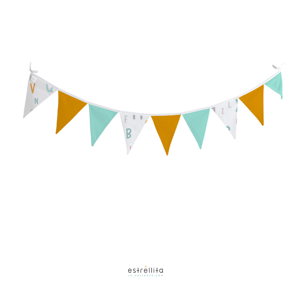 Guirnalda de banderines Abecedario mostaza mint