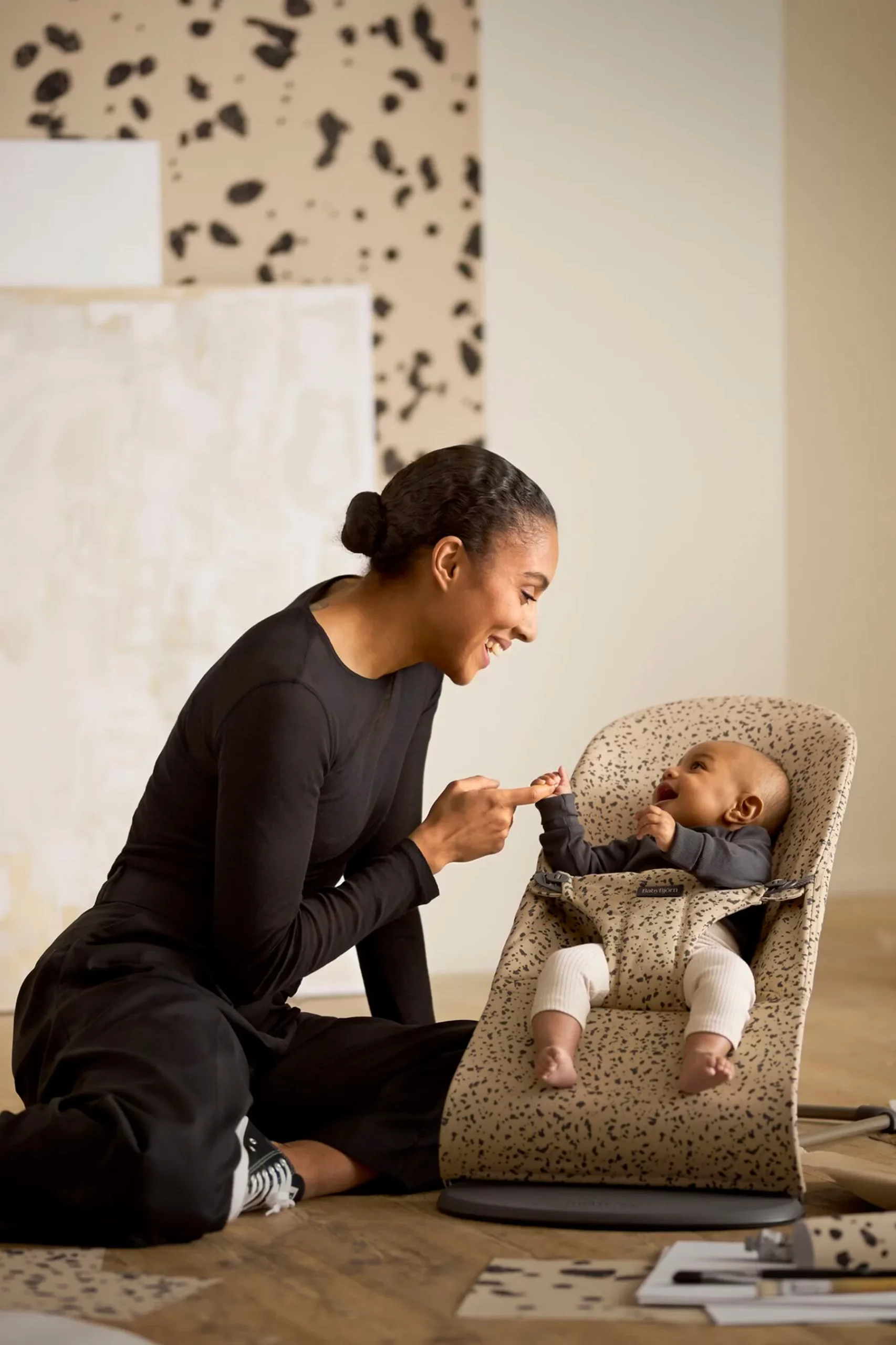 La Hamaca Bliss es ligera y manejable con balanceo natural que hace la vida con los niños pequeños más fácil y agradable. Son fáciles de trasladar de una habitación a otra y de transportar fuera de casa. Son un lugar acogedor para que el bebé juegue cerca de ti, mientras tienes las manos libres por un momento. El balanceo natural de la hamaca suele tener un efecto reconfortante en los bebés muy pequeños. A medida que tu bebé crece y aprende a controlar el balanceo, la hamaca es aún más divertida y estimula además su equilibrio y motricidad.