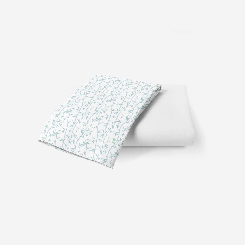 Sábana encimera con el estampado de Bambú y sábana bajera blanca.