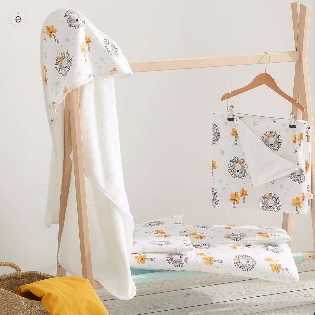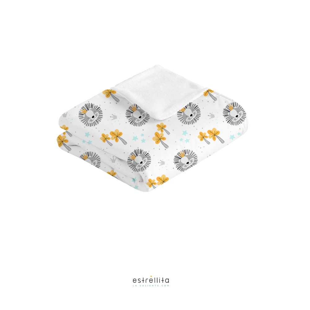 Manta polar Rey de la Selva es una elegante manta de arrullo ideal para regalar a recién nacidos. Diseño original de Estrellita La Valiente, con ella podrás coger a tu pequeño desde el mismo momento de su nacimiento.