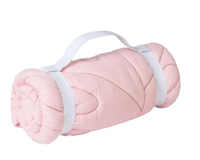 Una manta multiactividad muy  fácil de transportar gracias a sus correas de yoga.