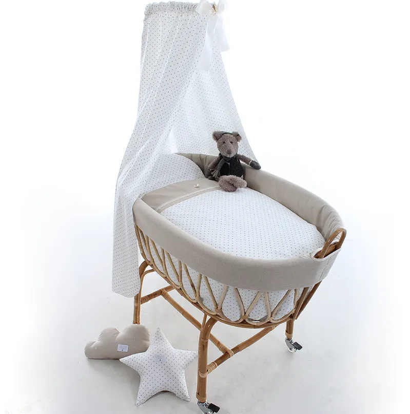 Minicuna de Ratán Col. DO LINO-THEO beige con dosel