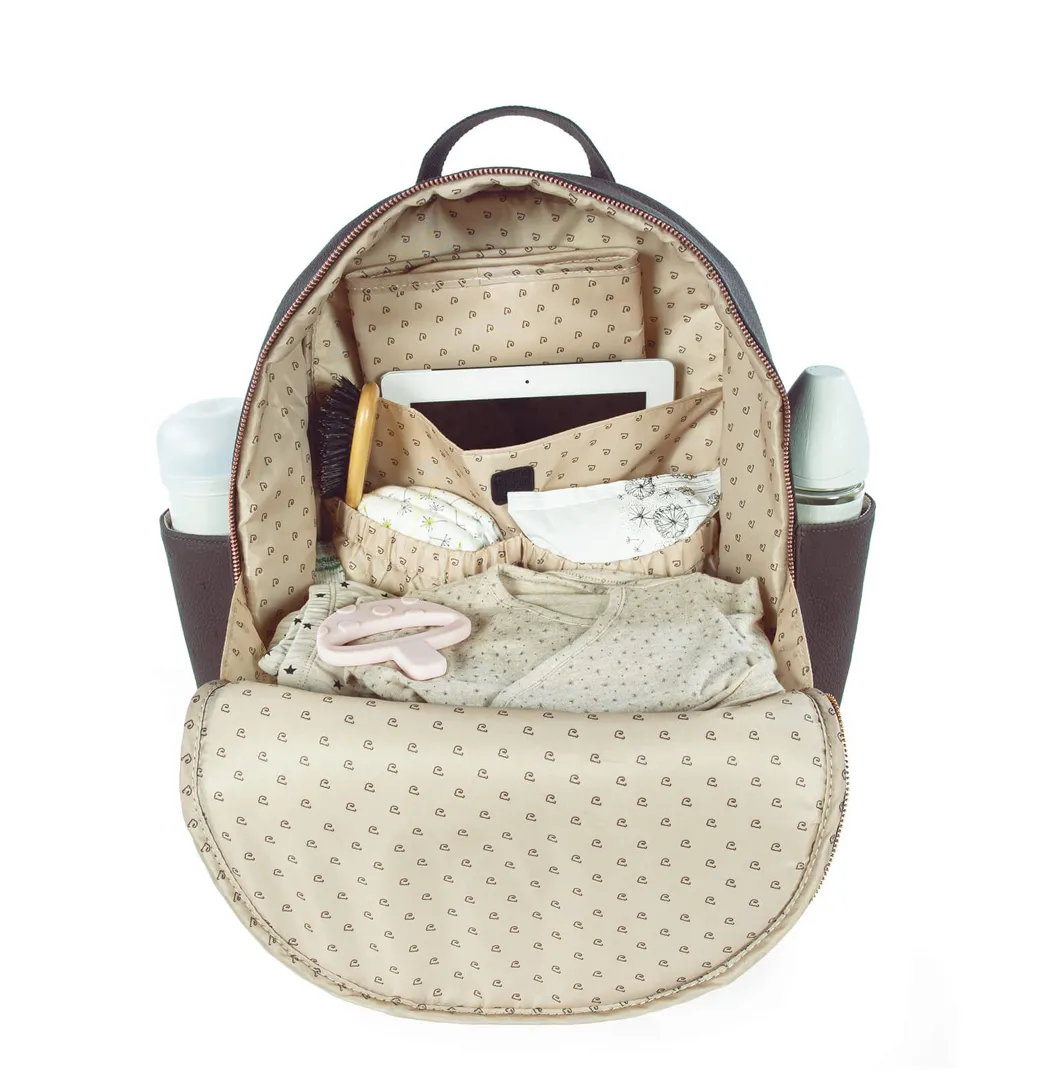 Mochila en polipiel marrón con estrellas grabadas London. De gran capacidad para llevar todo lo que necesitas tu y tu bebé. Bolsillos interiores y exteriores para tenerlo todo a mano y en orden. Compartimento para portátil o tablet. Tiene 2 asas grandes ajustables para que puedas usarla colgada a la espalda y otras dos asas pequeñas para que puedas usarla colgada del carrito del bebé. Incorpora una cinta para transportarla con tu equipaje. Se puede lavar a mano o a máquina a 30º. Los materiales utilizados están libres de colorantes azoicos, ftalatos y sustancias nocivas para la salud. Medida: 32X37X15 cm. Bolsas de maternidad de Pasito a pasito.