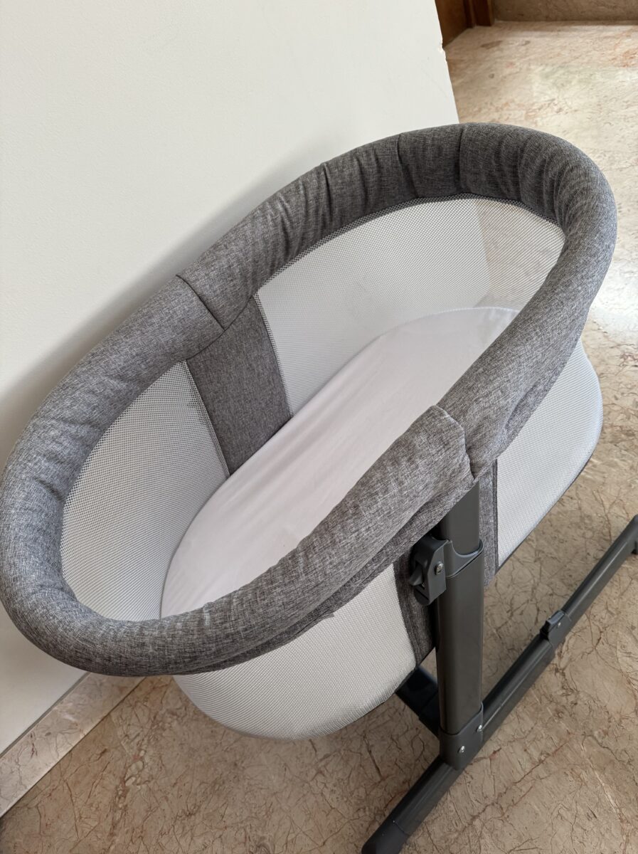 Moises ovalado marca Simmons, diferentes alturas ajustables, malla respirable y rueditas para trasladar fácilmente