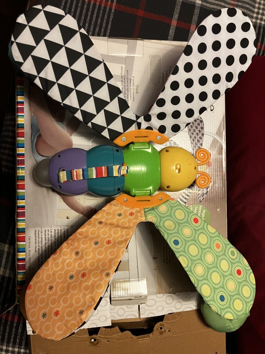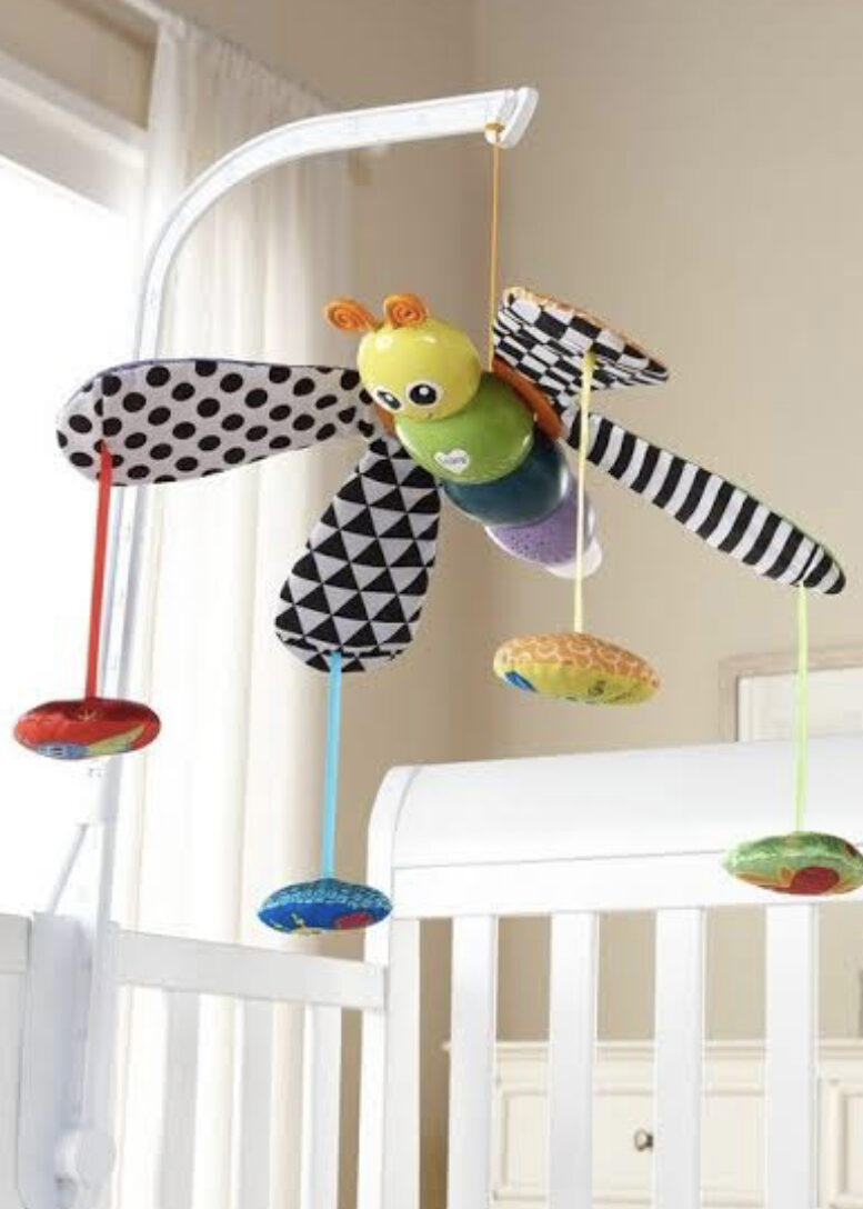 Lamaze presenta Freddie the Firefly Mobile. En parte juguete de desarrollo y en parte elemento de decoración de la habitación, el móvil presenta una gran luciérnaga colorida con alas que se agitan lentamente. Con patrones de alto contraste y personajes voladores adicionales, el móvil es perfecto para involucrar al bebé y fortalecer el seguimiento visual. El móvil incluye 4 selecciones de música, modos de reproducción de 15 o 30 minutos, dos modos de luz y control de volumen.