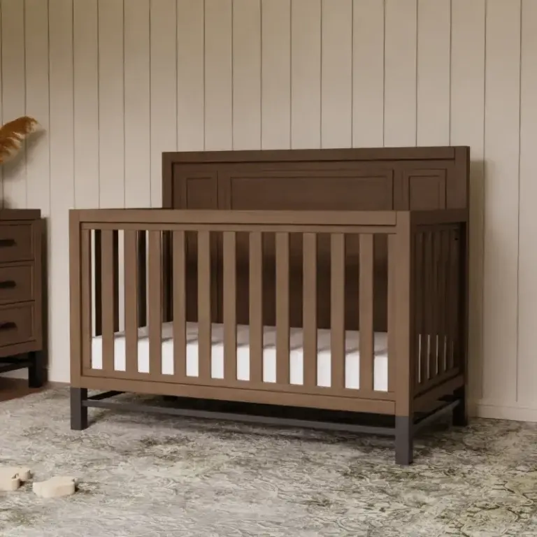 La Cuna Convertible Newbern 4-in-1 de Namesake combina diseño rústico moderno con practicidad y seguridad para acompañar cada etapa del crecimiento de tu bebé. Su hermoso acabado texturizado, la base metálica estilizada y los detalles contemporáneos la convierten en una pieza premium que realza cualquier habitación infantil.