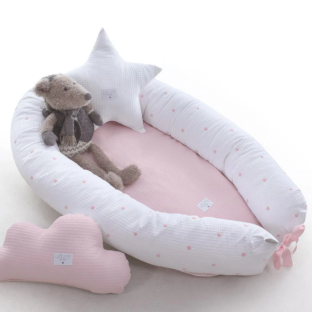 Este cojín nido colecho, es un producto versátil que abraza a su niño y proporciona una atmósfera segura evitando corrientes de aire Se puede utilizar como un reductor en la cuna, como un lugar seguro para jugar en el suelo junto al bebé o en una cuna de viaje Hecho con tejido de algodón 100% transpirable para asegurar que el niño se mantenga seco y cómodo. Totalmente desenfundable con funda de cierre de zip fácilmente lavable.