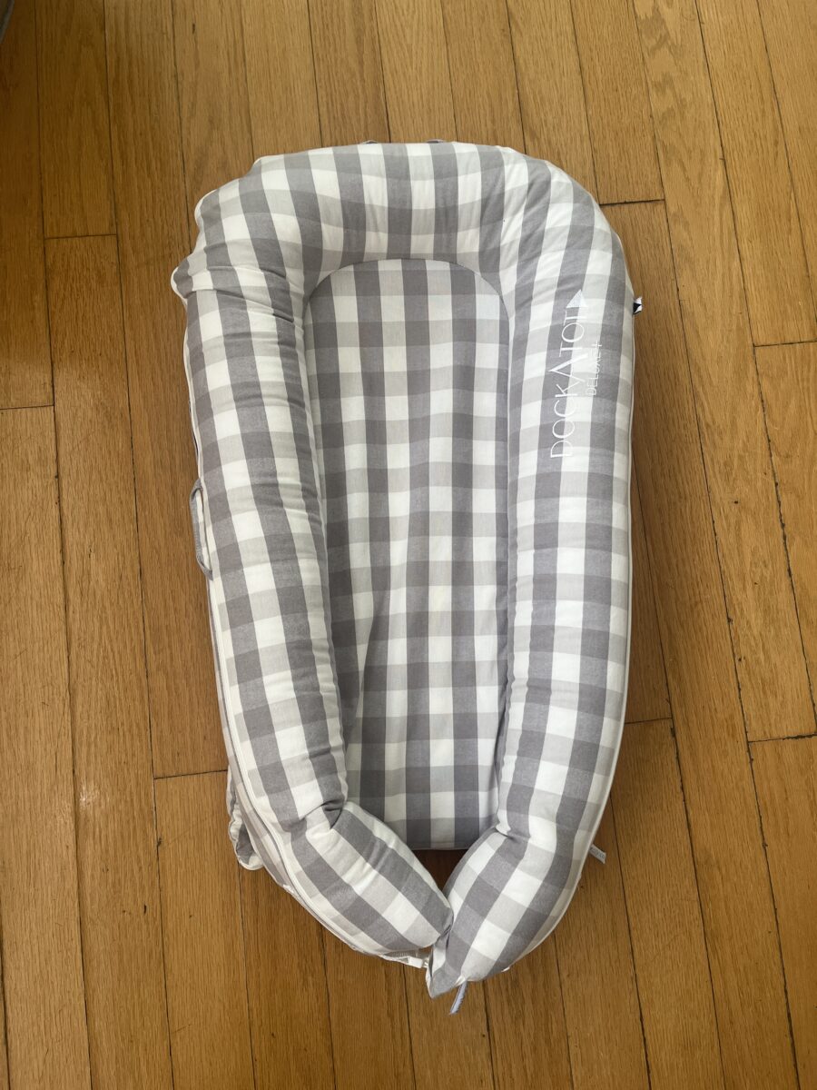 Dockatot Deluxe + Dock, color gris con blanco