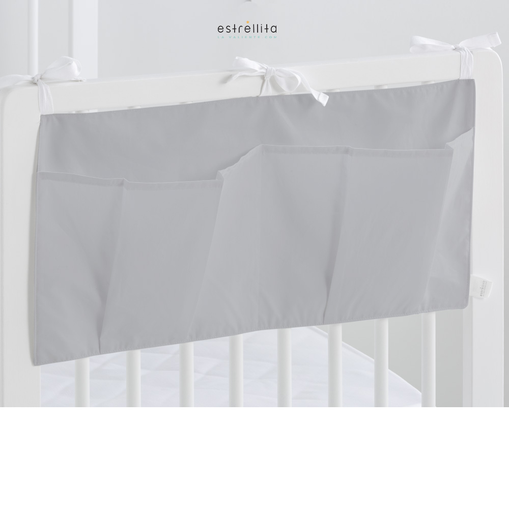 El organizador de cuna y capazo liso gris de Estrellita la Valiente es una gran solución para tener organizados todos los utensilios de primera necesidad para el bebé en tu cuna y/o capazo.