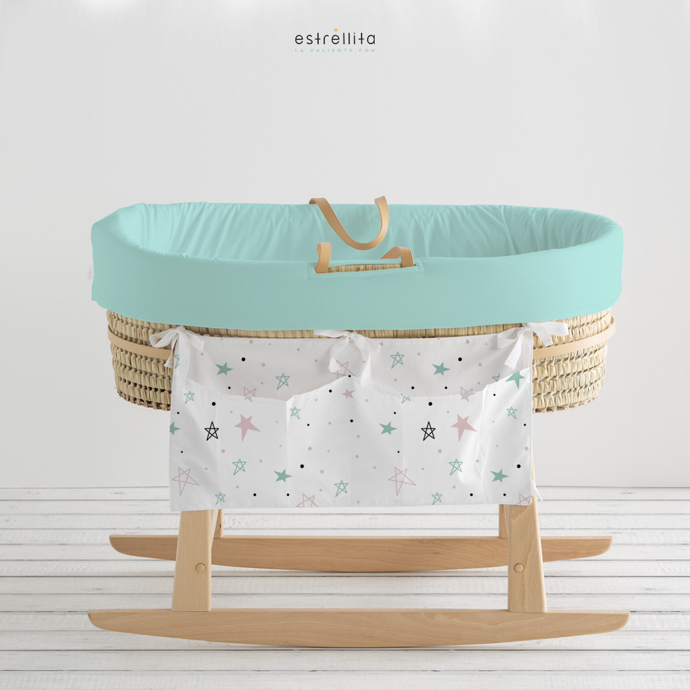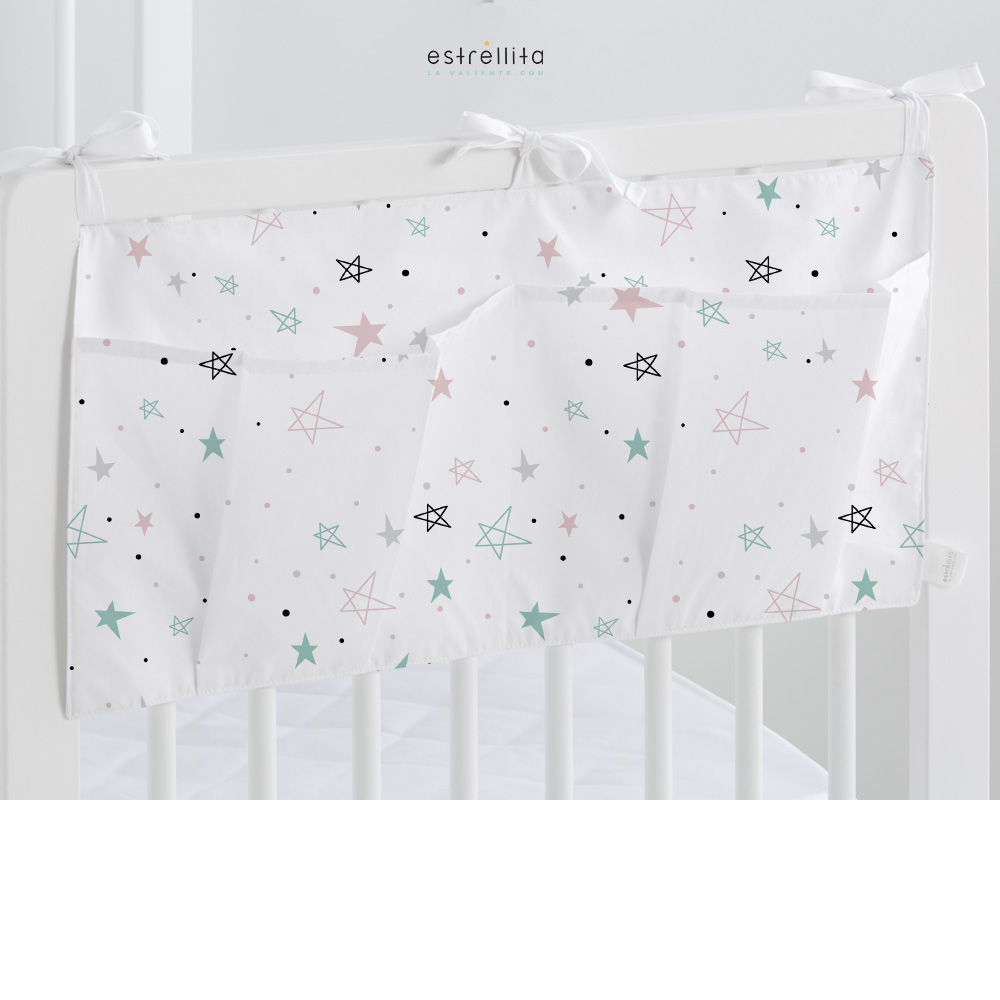 El organizador de cuna y capazo Noche estrellada rosa de Estrellita la Valiente es una gran solución para tener organizados todos los utensilios de primera necesidad para el bebé en tu cuna y/o capazo.