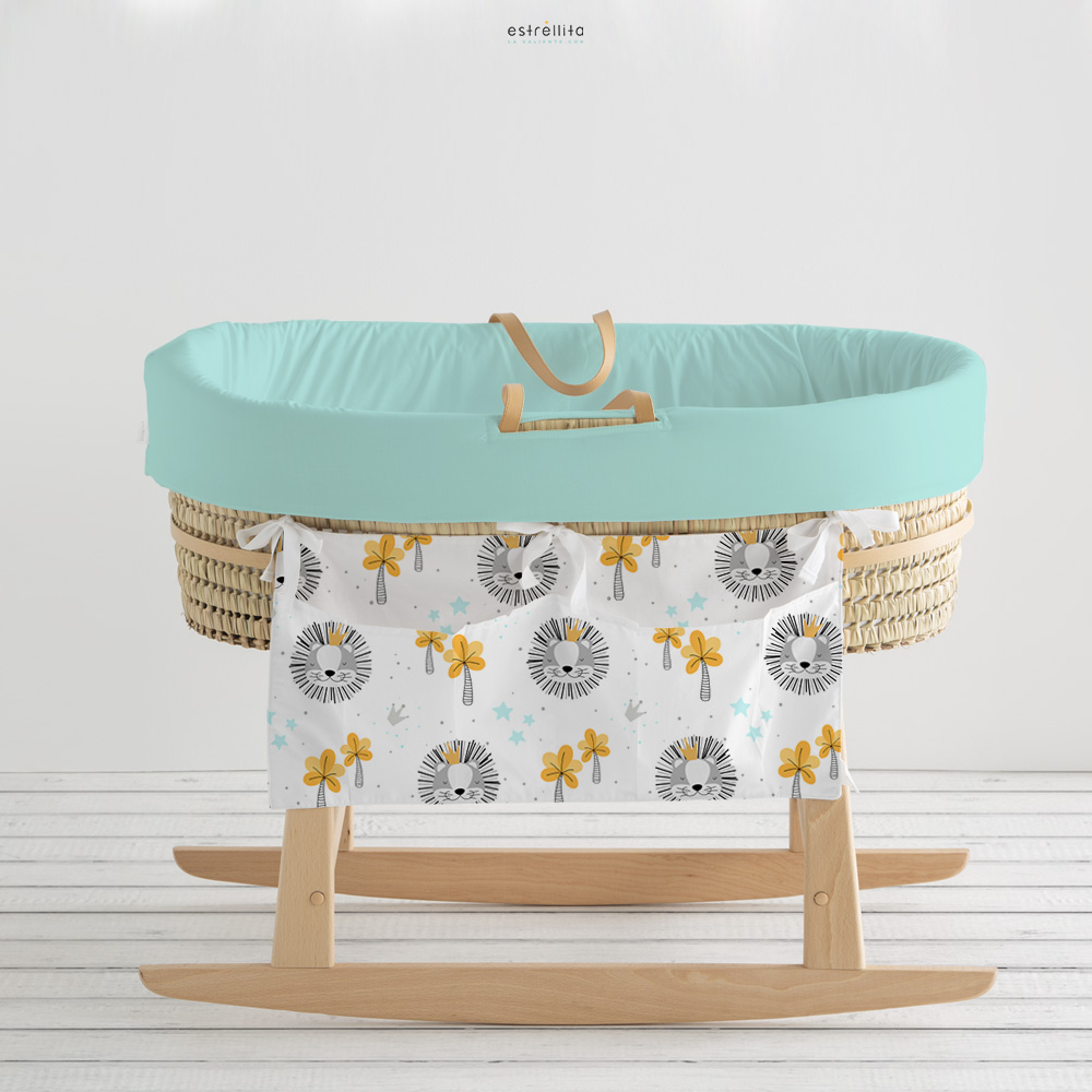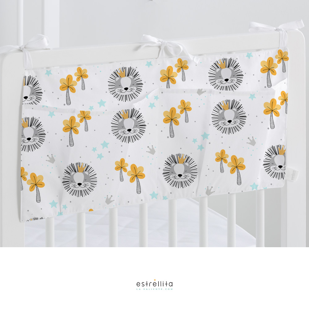 El organizador de cuna y capazo Rey de la Selva de Estrellita la Valiente es una gran solución para tener organizados todos los utensilios de primera necesidad para el bebé en tu cuna y/o capazo.