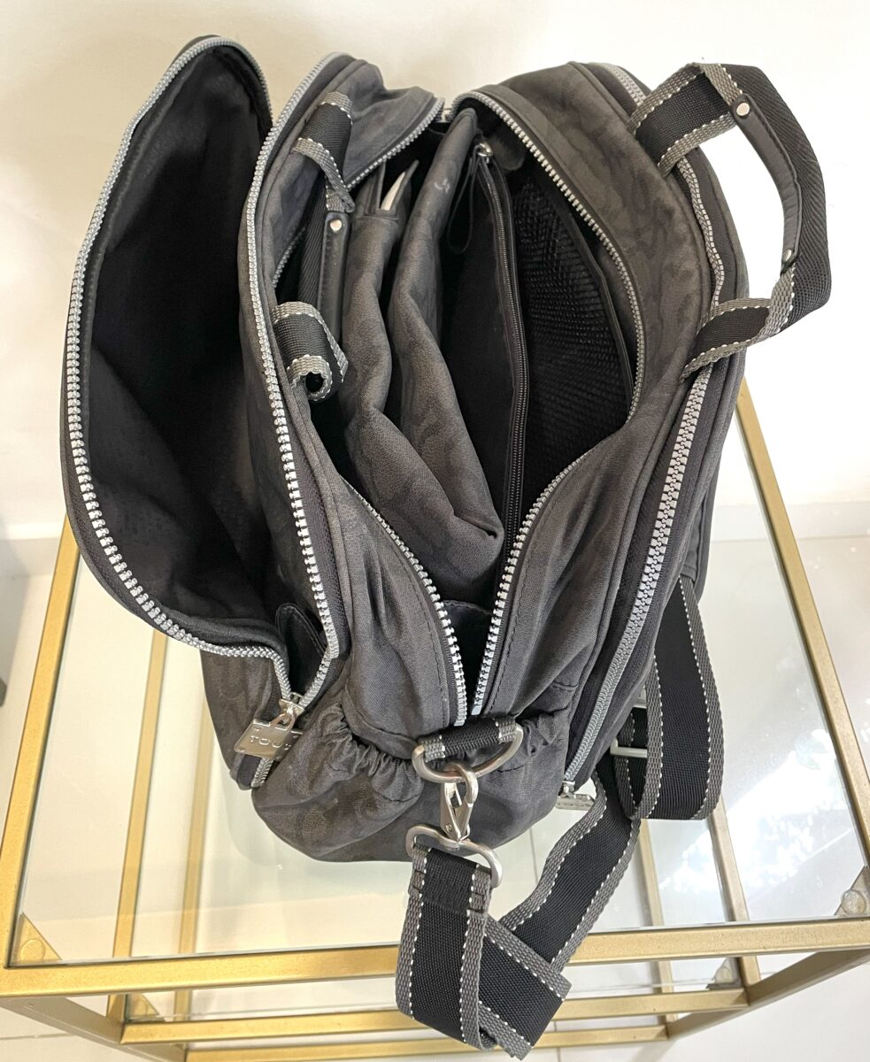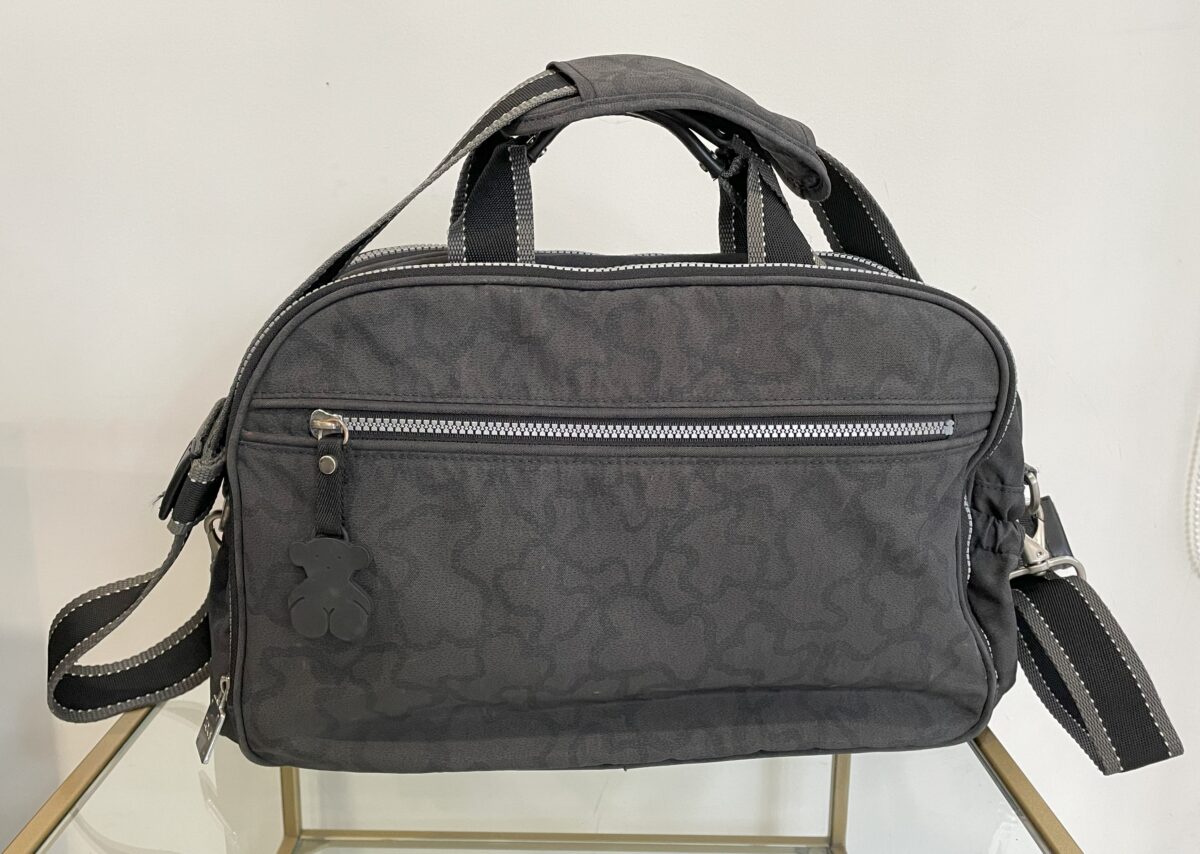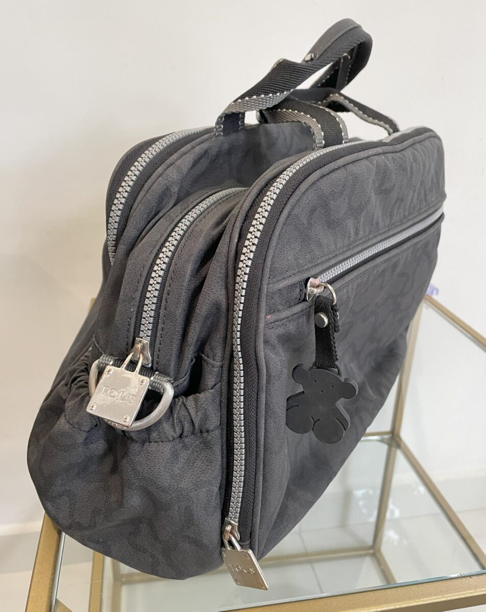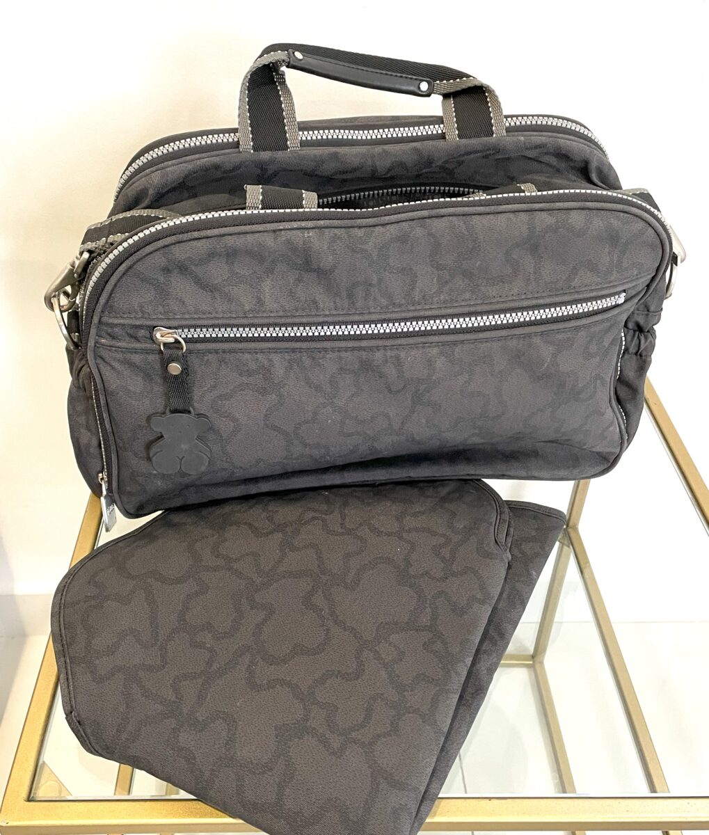 Pañalera TOUS Kaos, modelo Catri en color antracita-negro. Incluye tiras en la bandolera adaptables a cualquier carreola. Muy funcional, se incluye cambiador y estuche de la misma tela, sin detalles ni manchas.