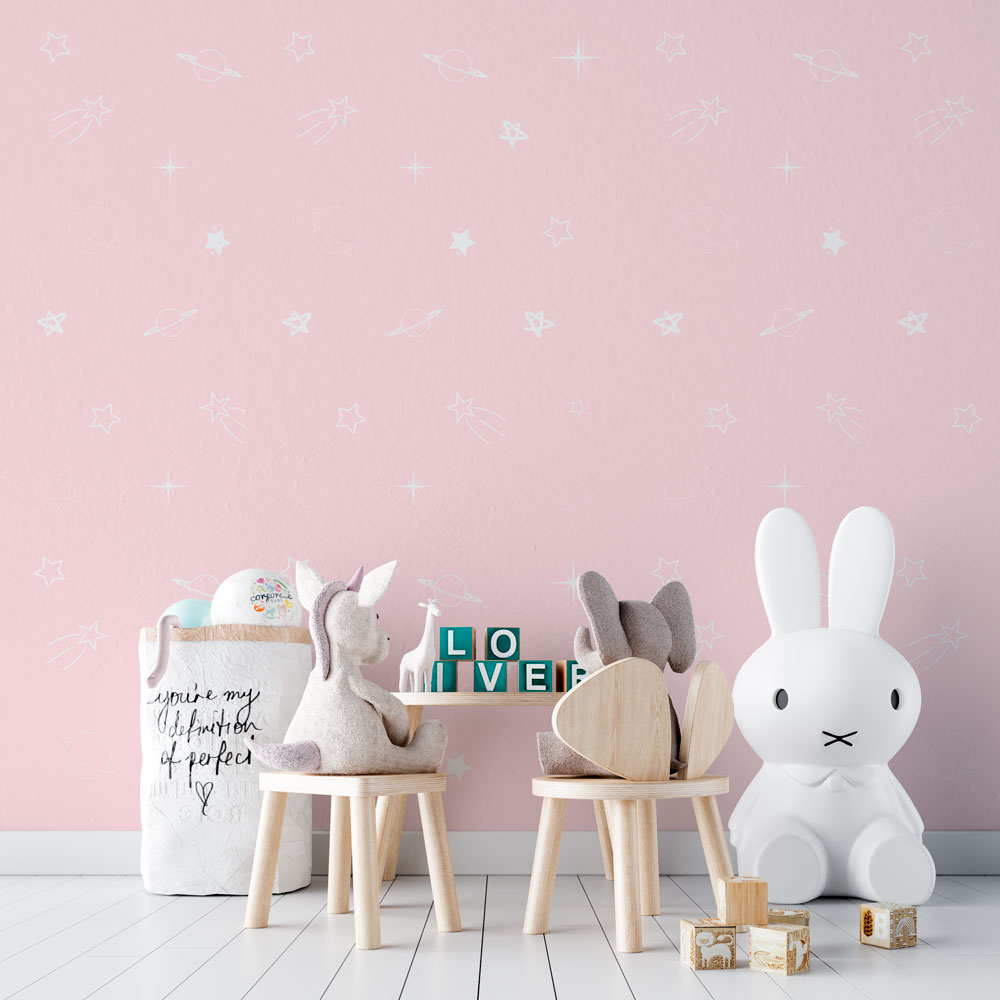 Papel pintado espacio rosa es un autoadhesivo removible con el que podrás decorar las paredes de las habitaciones de tus hijos. Una manera sencilla, rápida y eficaz de dar un aire diferente a una estancia. Y todo ello siempre empleando los mejores materiales del mercado.