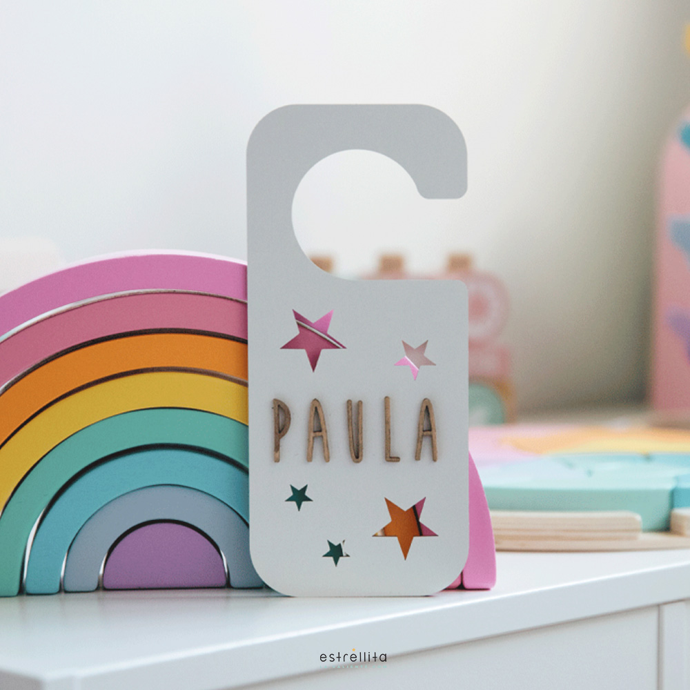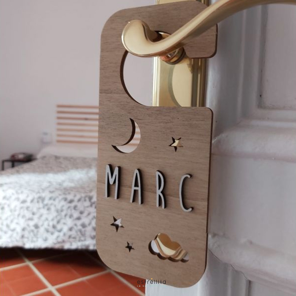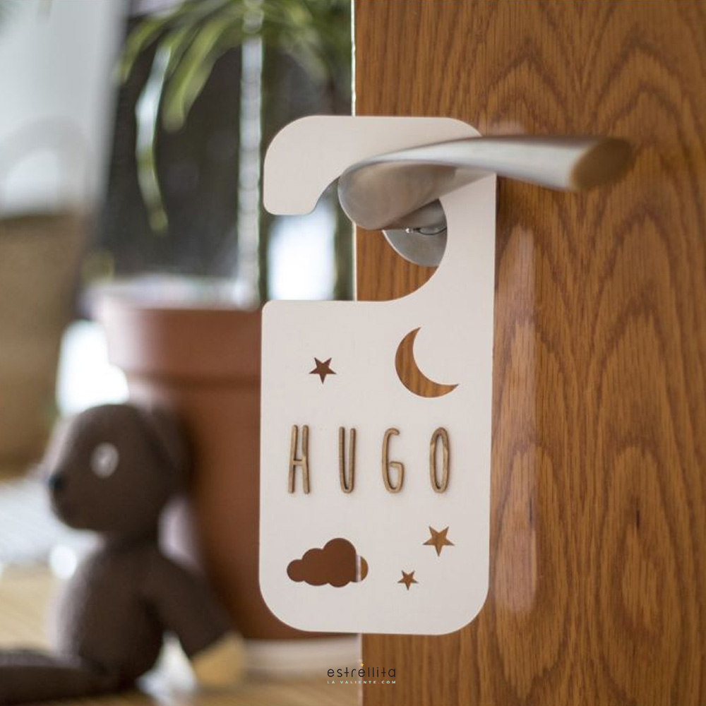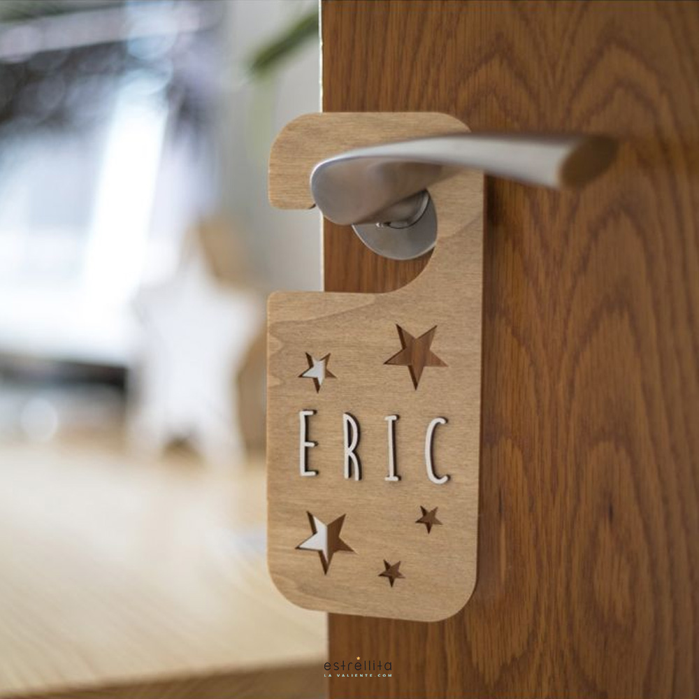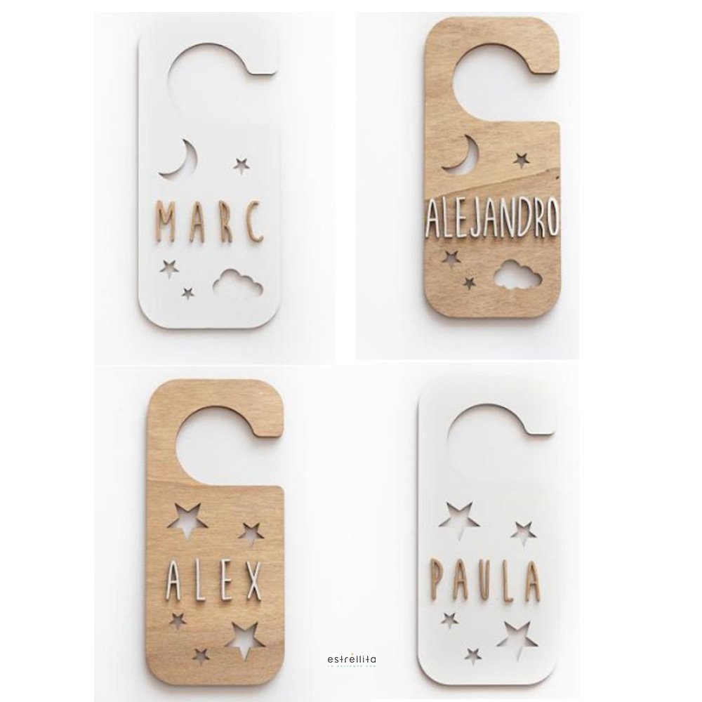 Placa pomo puerta personalizable es un complemento decorativo ideal para colocar en el pomo de cualquier puerta y dar personalidad a esa estancia. Imagínate la habitación de un bebé con este colgador de puerta personalizado con su nombre.