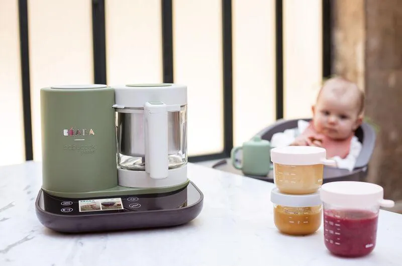 - Acompaña durante el proceso de la diversificación alimentaria del bebé: realización de recetas paso a paso gracias a la pantalla táctil integrada