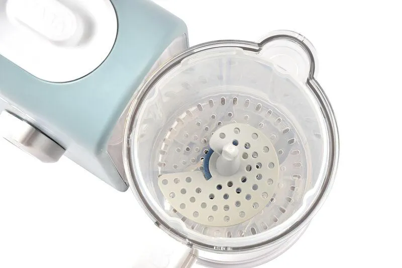 – Cuchilla con doble curvatura para varias texturas (lisa, molida, picada) y adaptadas a la edad del niño: para una mezcla optimizada