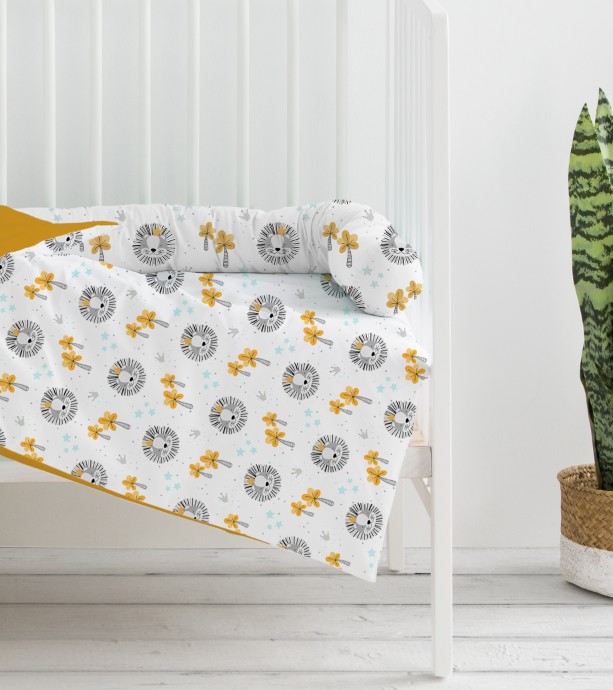 La función principal de este rulo protector para cuna es limitar el espacio de movimiento del bebé y evitar los roces contra las barandillas, recreando un ambiente cómodo y familiar.