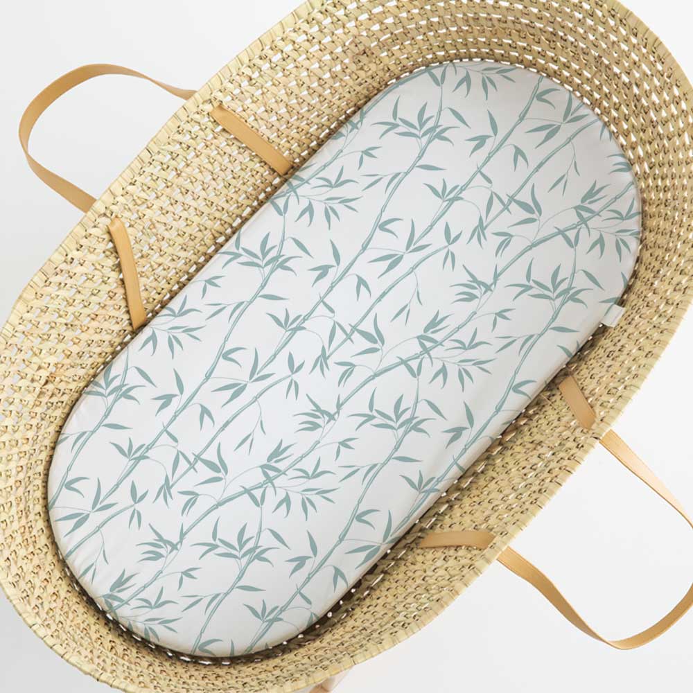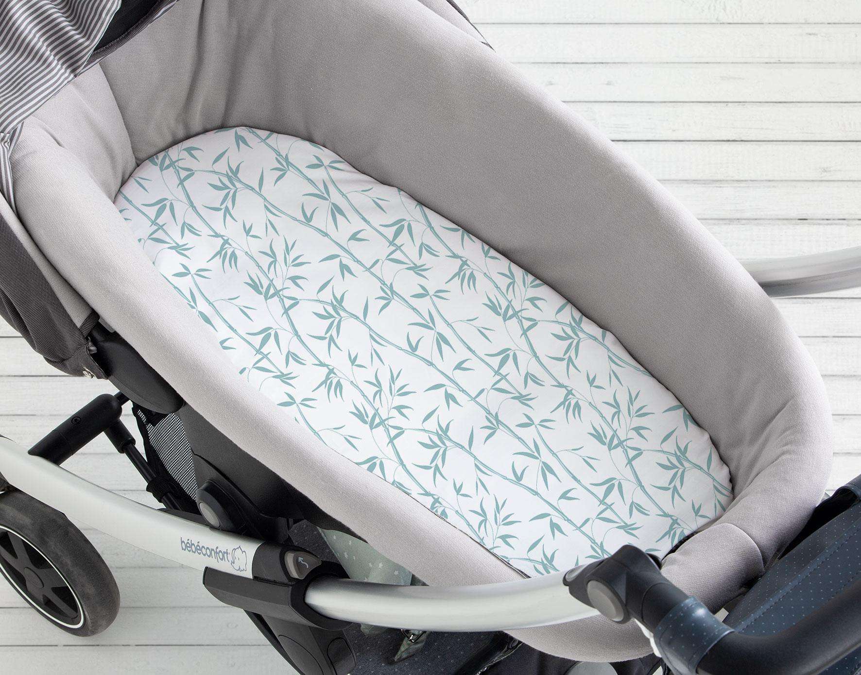 La sábana bajera capazo y cuco Bambú se adapta perfectamente tanto al colchón de nuestro capazo como al cuco de los cochecitos de bebé. Es una preciosa sábana bajera con dibujos de cañas y ramitas de bambú en color mint. Podrás combinar perfectamente con cualquier producto de nuestra colección Bambú.
