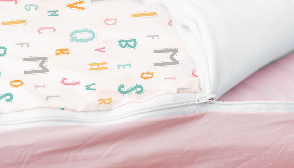 Características del saco nórdico cama Abecedario bajera rosa: