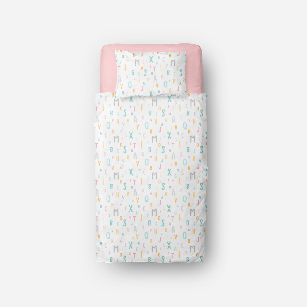 Saco nórdico cama Abecedario bajera rosa