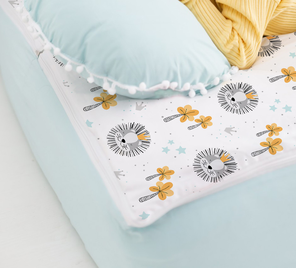 El saco nórdico cama Rey de la Selva bajera mint es fácilmente desenfundable y se separa de la sábana bajera para un lavado óptimo. Esto supone una comodidad añadida.