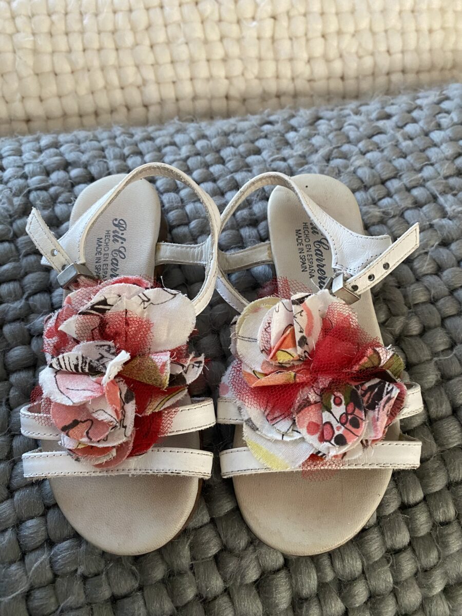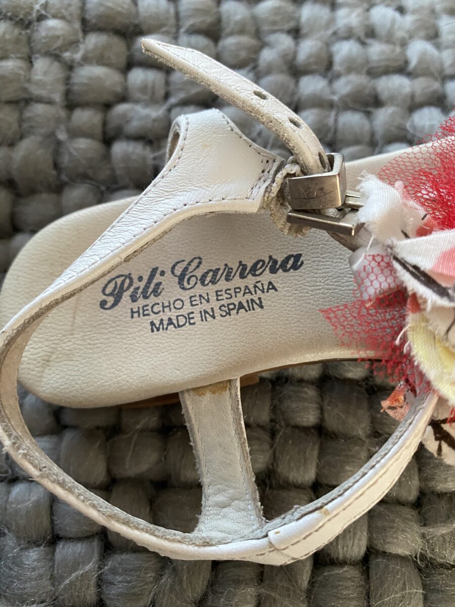 Sandalia para niña, color blanco con rojo, 3-4 años, Pili Carrera