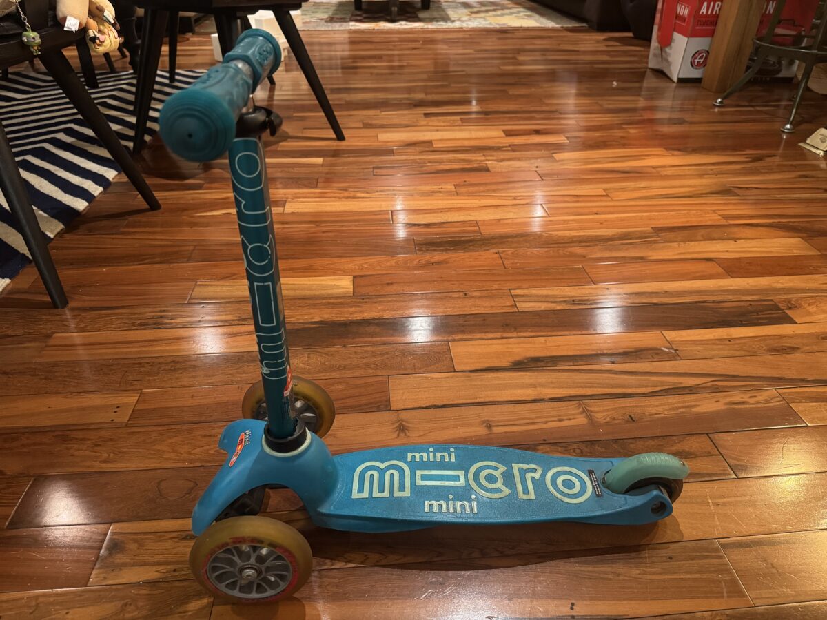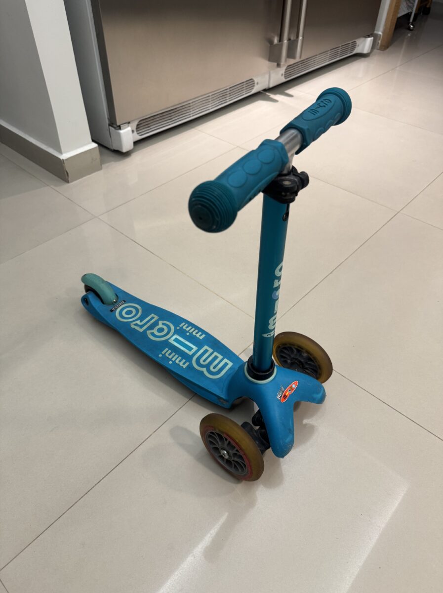 De muy buena calidad. De 2a 6 años, hasta 50 kg Con mecanismo de inclinar y girar El manubrio se puede ajustar de 49 a 60 cm. El color verde/aqua lo hace atractivo para niños y niñas.